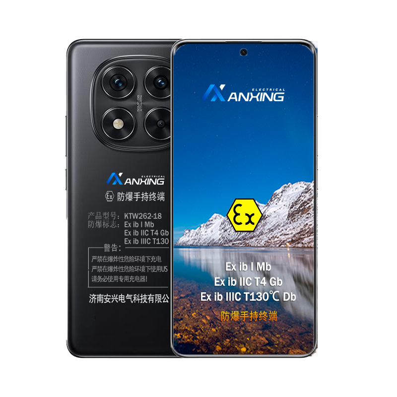 KTW262-18防爆手持终端通过Ex ib I Mb/Ex ib IIC T4 Gb/Ex ib IIIC T130℃ Db三重防爆认证,结合IP68级防护能力,可在燃气、化工等危险环境中实现本质安全。济南安兴电气科技有限公司采用复合强化结构与密封工艺,使设备在极端工况时仍保持稳定运行。